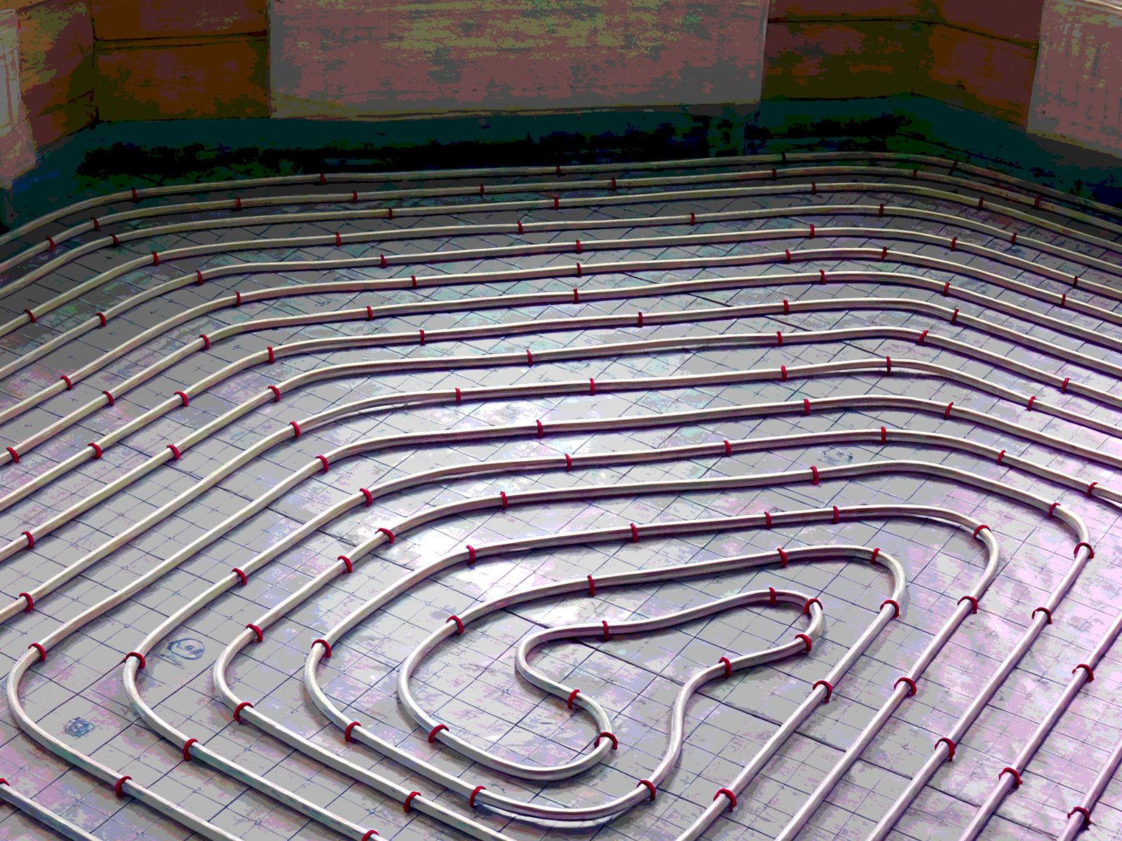 Провод укладывается в бетон до заливки и подключается к понижающему трансформатору.
